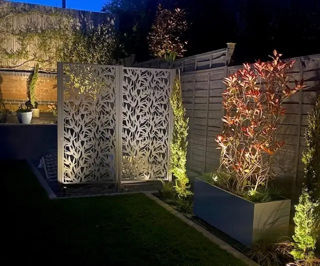 Transform metal garden screening into dramatic nighttime focal points using carefully positioned LED strip lighting. Light placed behind perforated screens creates stunning pattern projection across gardens, turning functional elements into artistic installations.