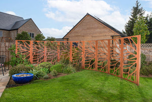 Folded aluminium privacy screens with matching posts. Kit includes fixings and an installation guide.
