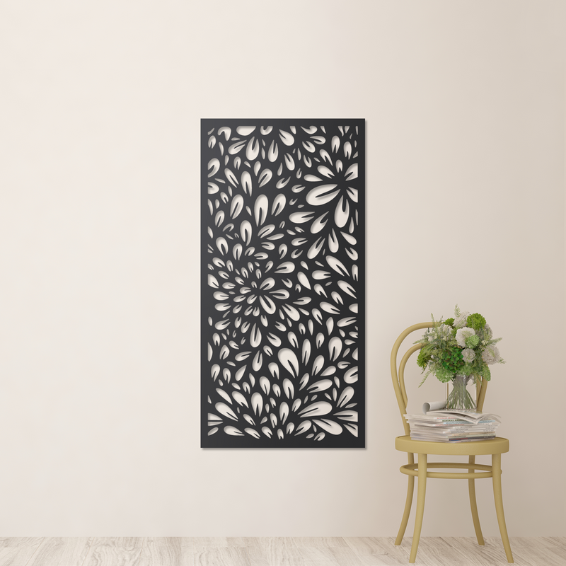 The Blossom metal garden screen is the perfect way to bring a natural touch to your outdoor space while also providing privacy and visual interest. The intricate organic designs feature unique patterns that will enhance the beauty of any garden or enclosed area. Made of durable and weather-resistant metal, this screen is both functional and stylish and easy to install and maintain. With the Blossom screen, you will elevate the aesthetic of your outdoor area and create a peaceful and serene atmosphere.