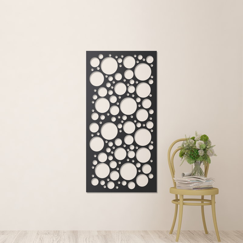 Introduce the Bubble Bath metal garden screen to your outdoor space with an alternative design that will make it stand out from the rest. Made from weather-resistant metal, it's both long-lasting and fashionable. It provides privacy and visual interest while being easy to install and maintain. This unique alternative design is perfect for any outdoor area, like a garden or patio. It is the perfect blend of style and function. Don't wait, elevate your outdoor décor with the Bubble Bath metal garden screen today.